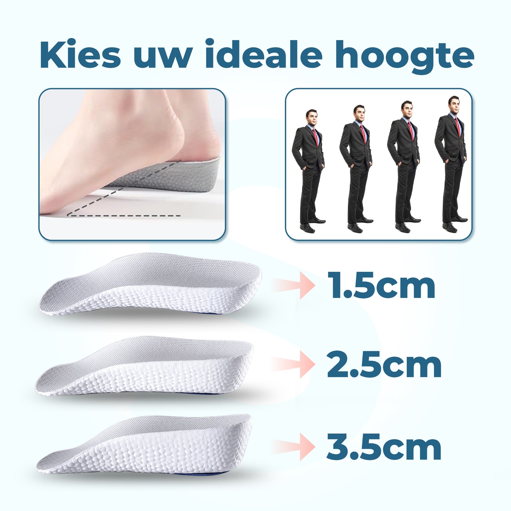 • Onzichtbare verhoging – Vergroot je lengte subtiel met 1.5 cm, 2.5 cm of 3.5 cm.