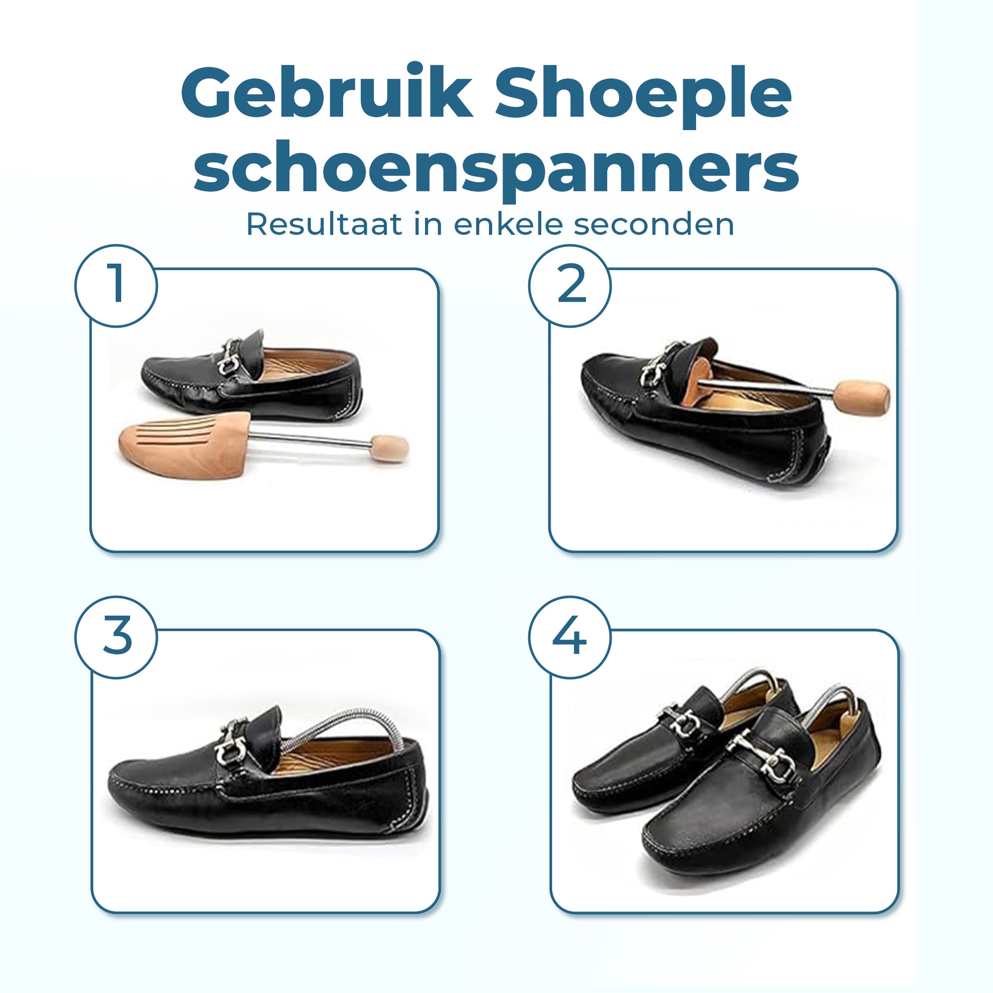 Dankzij het verstelbare mechanisme past de spanner zich automatisch aan de lengte en breedte van je schoenen aan, waardoor hij geschikt is voor vrijwel elk model – van herenschoen tot damesschoen.