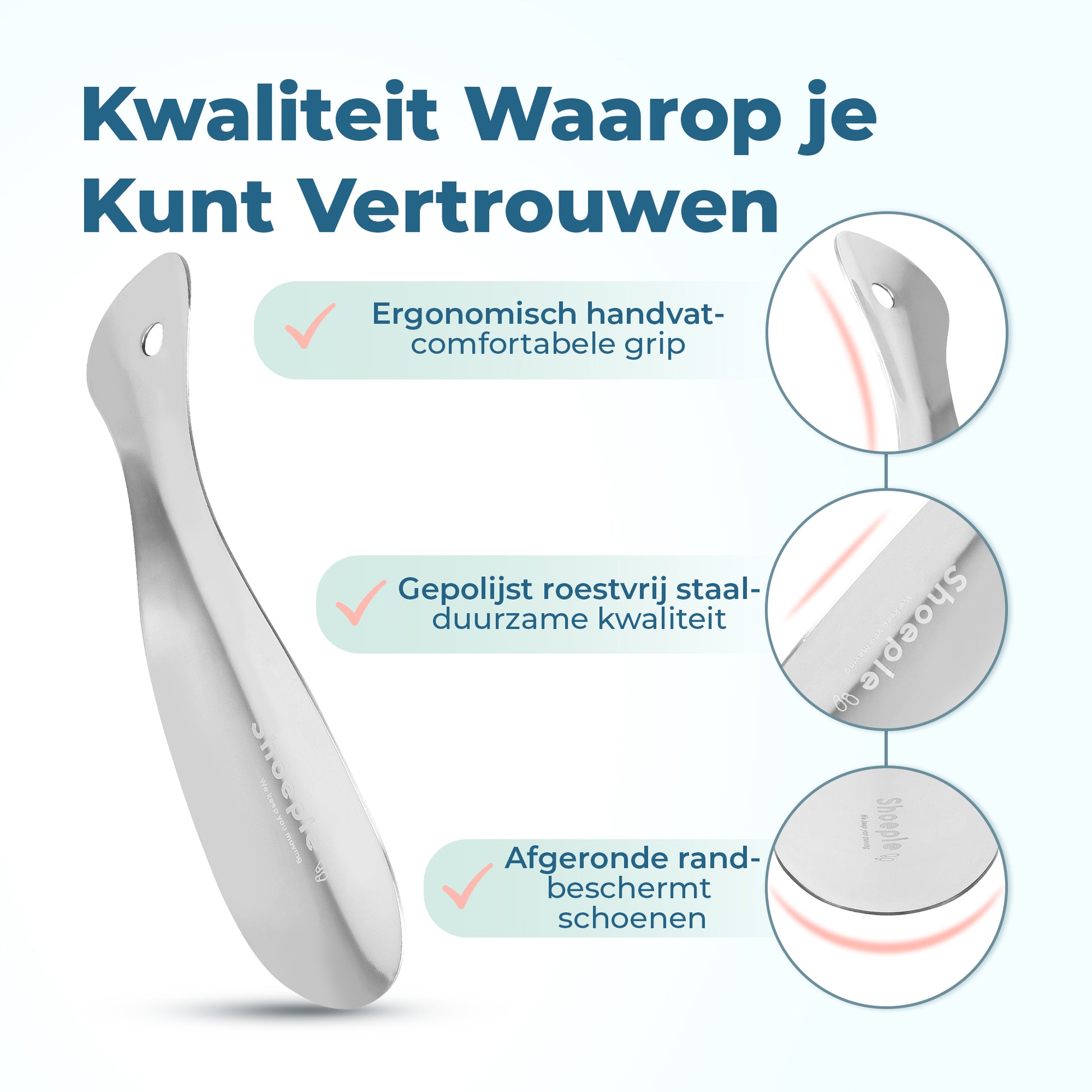 Shoeple Schoenlepel - 18,5cm Lang - RVS Duurzaam en extra sterk - Zilver