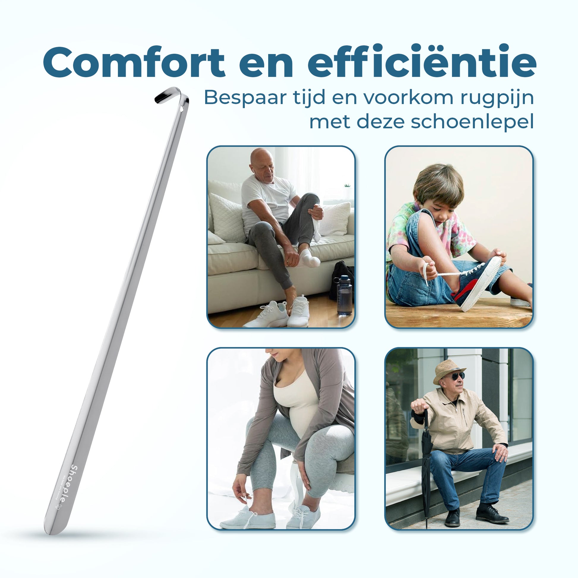 Met de zilverkleurige RVS schoenlepel van Shoeple combineer je gemak, comfort en elegantie in één. Dankzij de lengte van 58 cm trek je je schoenen moeiteloos aan zonder te bukken, terwijl je ook nog eens slijtage aan je hiel voorkomt. Ideaal voor dagelijks gebruik – en een stijlvol item in elke hal.