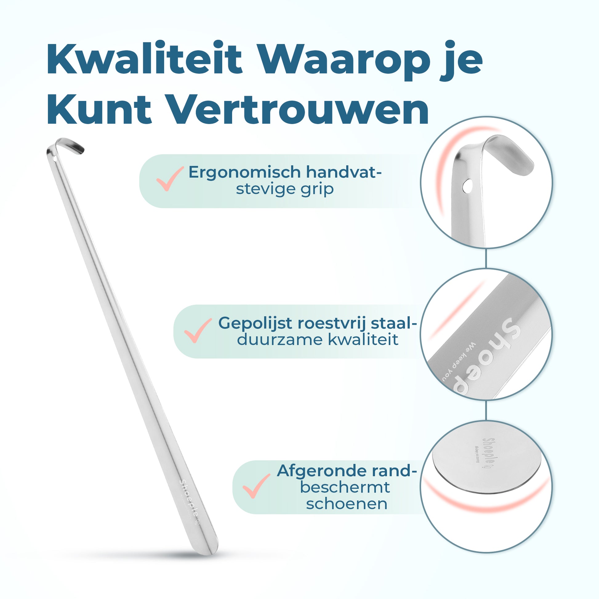 Shoeple Schoenlepel - 58cm Lang - RVS Duurzaam en extra sterk - Zilver