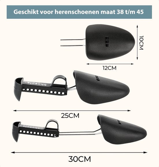 De duurzame kunststofconstructie en het verstelbare ontwerp maken deze schoenspanners ideaal voor dagelijks gebruik. Ze zijn in lengte verstelbaar, zodat je ze perfect kunt afstemmen op jouw schoenmaat. Een must-have voor iedereen die zijn schoenen graag in topconditie houdt.